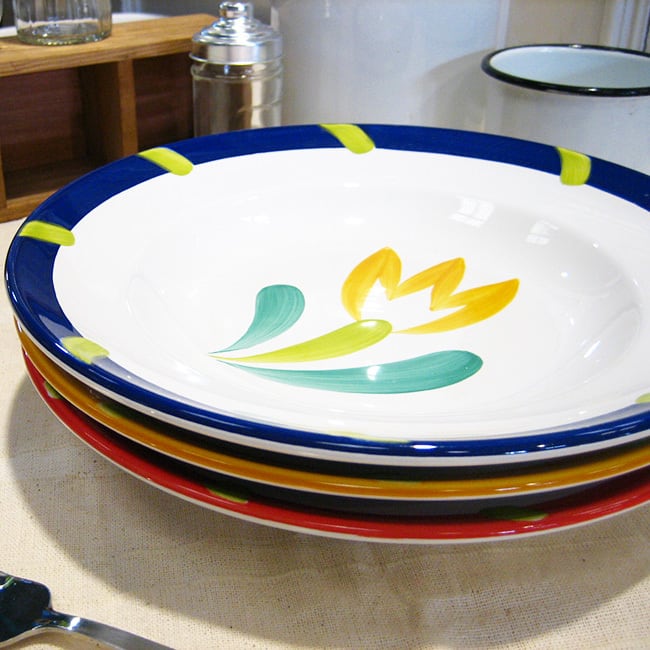 ハンガリーの陶磁器メーカー、ヘレンド・マジョリカ(HERENDI MAJOLIKA)のカラフルなチューリップがハンドペイントされた大きめサイズのラウンドディッシュです。やや深さがありスープやパスタ皿としてちょうど良いサイズです。普段使いから来客時のおもてなし用のお皿として幅広くお使いいただけます。