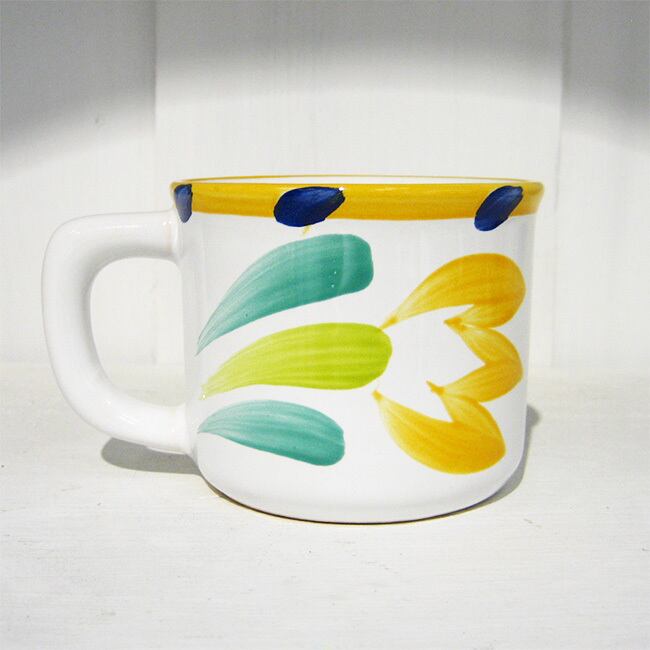 ハンガリーの陶磁器メーカー、ヘレンド・マジョリカ(HERENDI MAJOLIKA)のカラフルなチューリップがハンドペイントされた可愛いコーヒーカップです。電子レンジにも対応しているのでコーヒー・紅茶、カフェオレはもちろん、ホットココアやホットミルクもOKです。