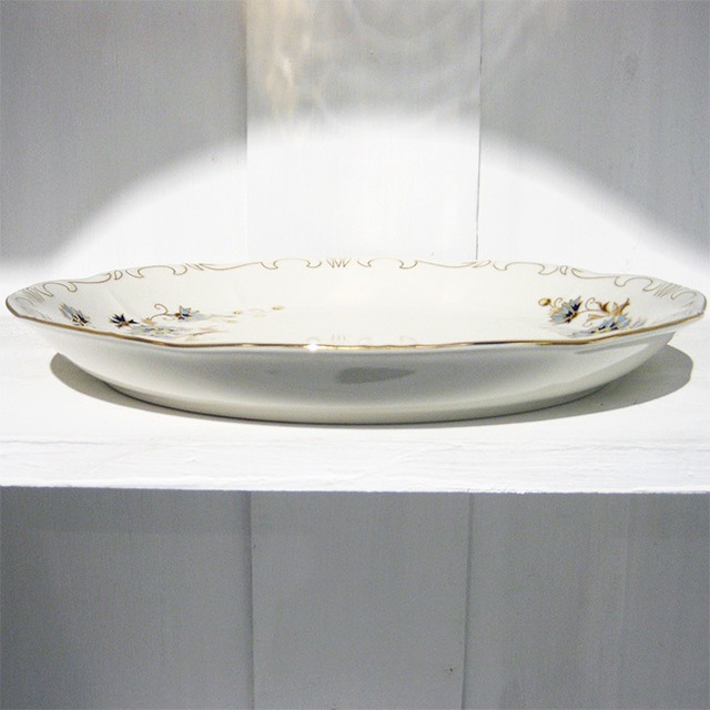 ハンガリーの陶磁器メーカー、ジョルナイ(Zsolnay)の金彩と清楚なブルーのヤグルマギクのデザインがエレガントなケーキプレートです。ヤグルマギクの花の青(コーンフラワーブルー)は、ヨーロッパでは青の中で最高に美しいといわれ、自宅に居ながら高級レストランやホテルのような贅沢な気分が楽しめます。